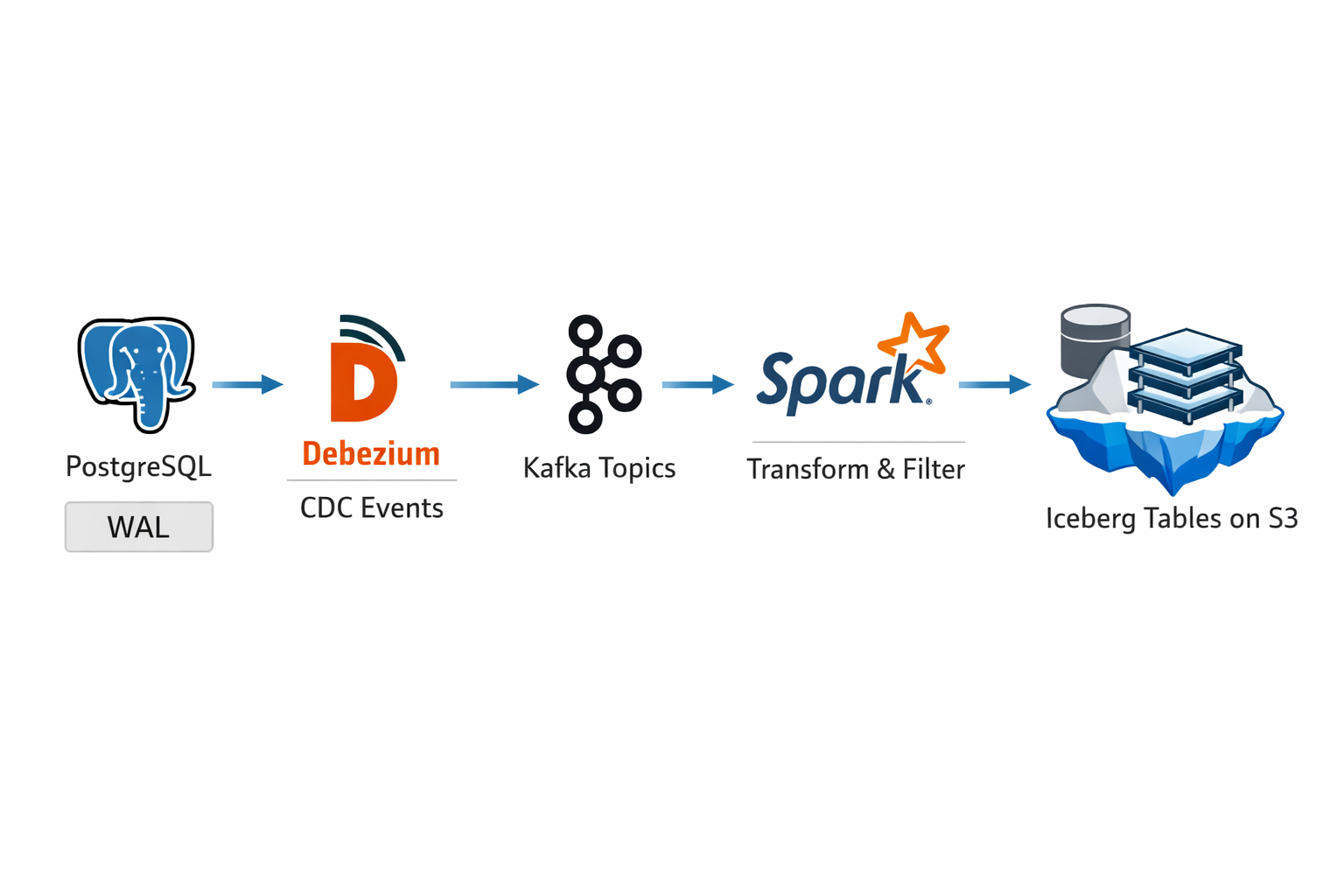 The combination of Iceberg's reliability, PostgreSQL's CDC capabilities, and thoughtful architectural patterns transforms data infrastructure into a competitive advantage. Start with foundational bronze tables capturing raw data, progress through silver zone curation and integration, and deliver business value through gold zone analytics.